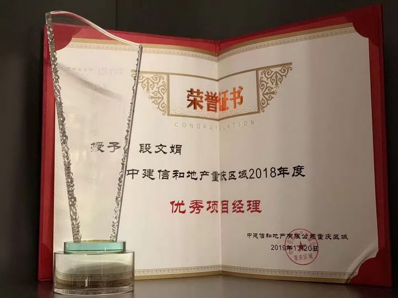 伊派設(shè)計總監(jiān)段文娟榮獲中建信和地產(chǎn)重慶區(qū)域2018年度“優(yōu)秀項目經(jīng)理”